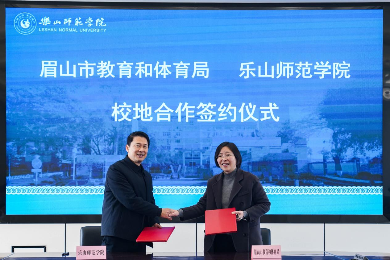 本网讯(文/刘秋 罗晓娟 图/曾仁丽)1月14日,我校与眉山市教育和体育局战略合作签约仪式在弘毅楼第一会议室举行。学校党委常委、副校长汪天飞,眉山市教体局党委委员、副局长龚丽萍出席仪式并致辞。